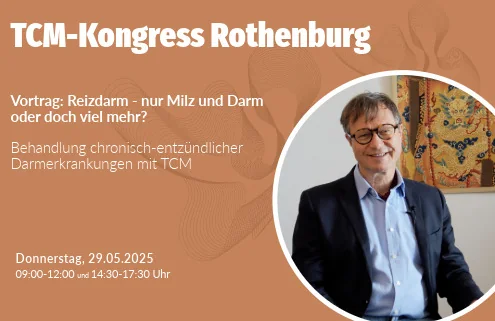 Am 29. Mai 2025 spreche ich auf dem renommierten TCM-Kongress Rothenburg zum Thema: „Reizdarm – nur Milz und Darm oder doch viel mehr?“. Behandlung chronisch-entzündlicher Darmerkrankungen mit TCM. In meinem Vortrag zeige ich auf, wie Traditionelle Chinesische Medizin – insbesondere Akupunktur, Moxibustion und die chinesische Arzneimitteltherapie – bei Erkrankungen wie Reizdarmsyndrom und Colitis ulcerosa wirkungsvoll eingesetzt werden kann.